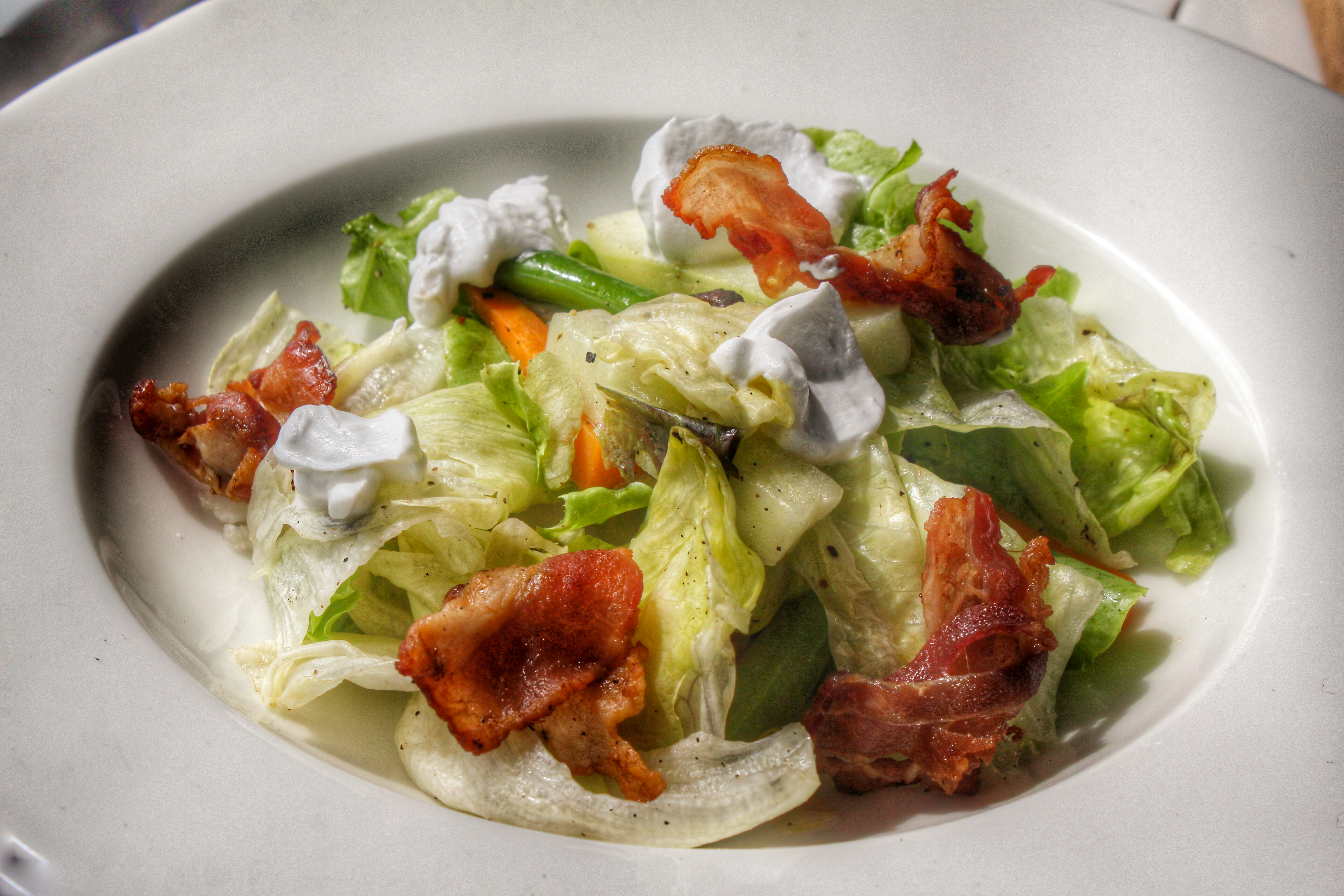 So took a few digs and I knew I wanted to save up for the bigger battle ahead! The Cobb salad seemed light so we lit it up with some bacon thrown into the mix.