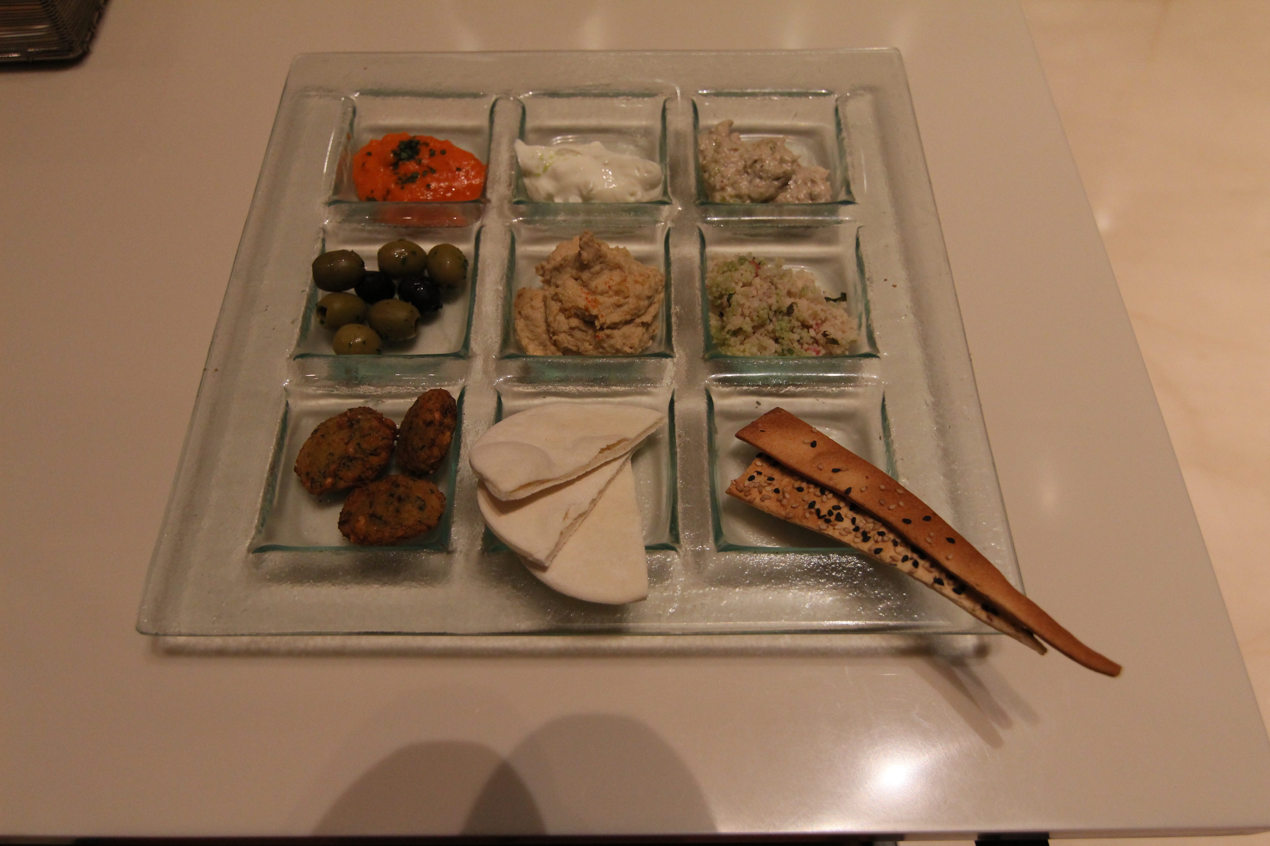 The colourful platter with Falafel, Pita and Crackers served with Humus, Babaghanoush and Tzatziki dips. Given a choice, I would have just been stuck to this one corner and continued the carnage.